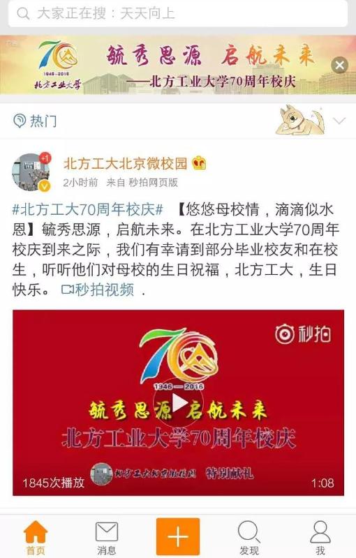 2017年5月,马可出任微博校园北京渠道省主管、微博校园品牌包装设计师,从校园主编到省级主管,马可在新媒体的道路上越走越远。在充分掌握新媒体工作经验的同时,马可充分发挥专业优势,在永利官网建校70周年校庆系列活动中,承担了相应的新媒体宣传工作,运营了#北方工大70周年校庆#微博话题,夺得教育榜第三名的成绩,并在校庆日当天在全国范围内为母校投放了600万资源的微博置顶广告,大大提升了宣传效果。